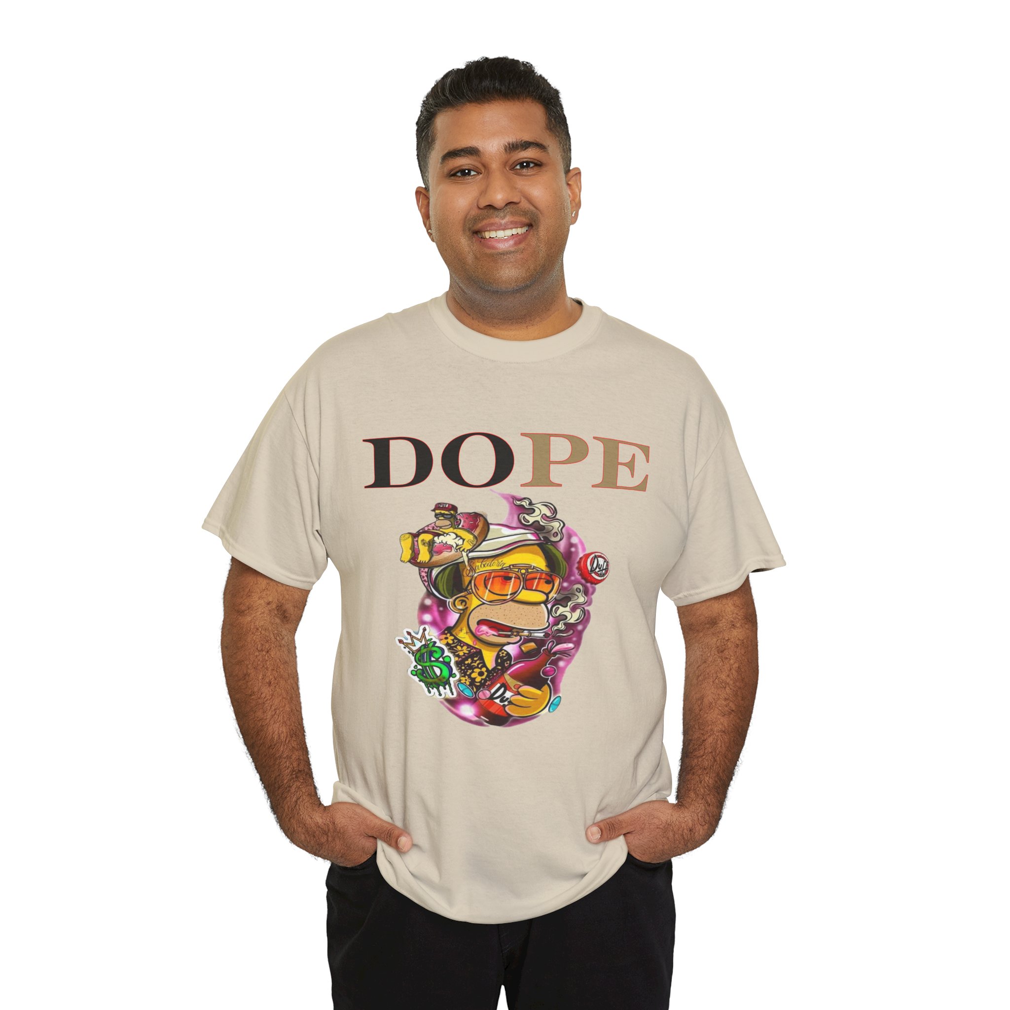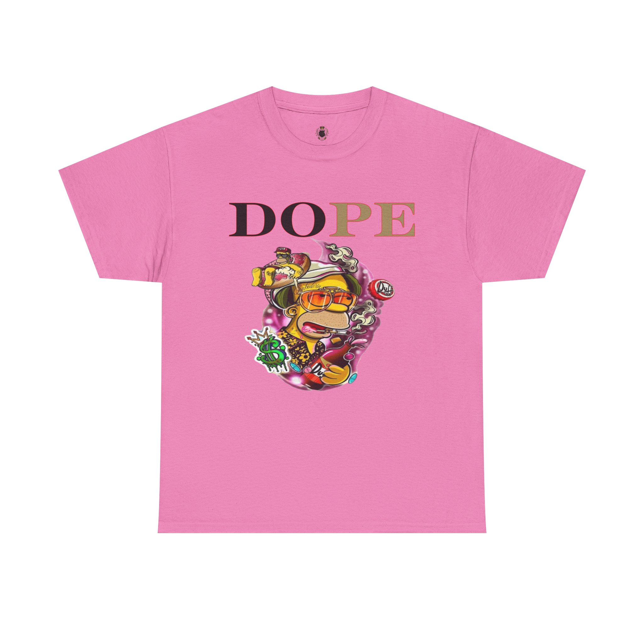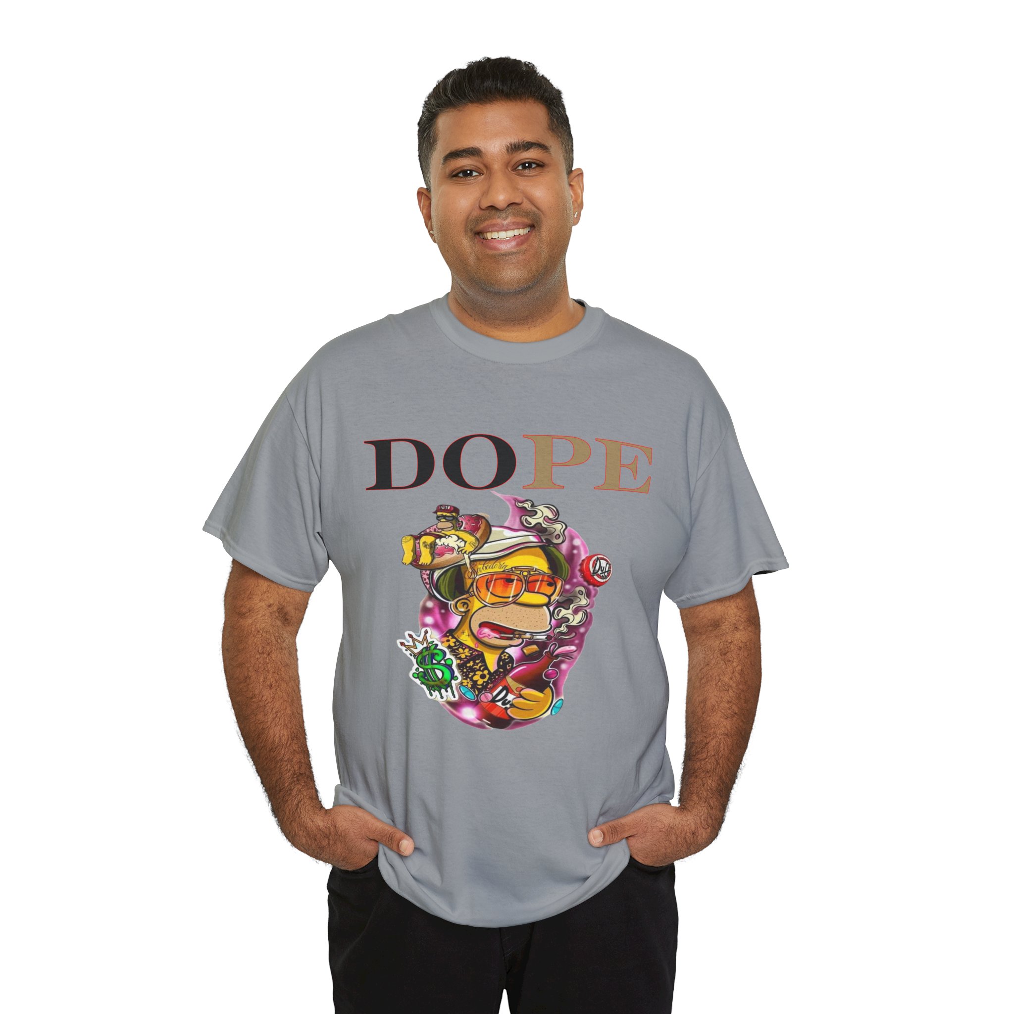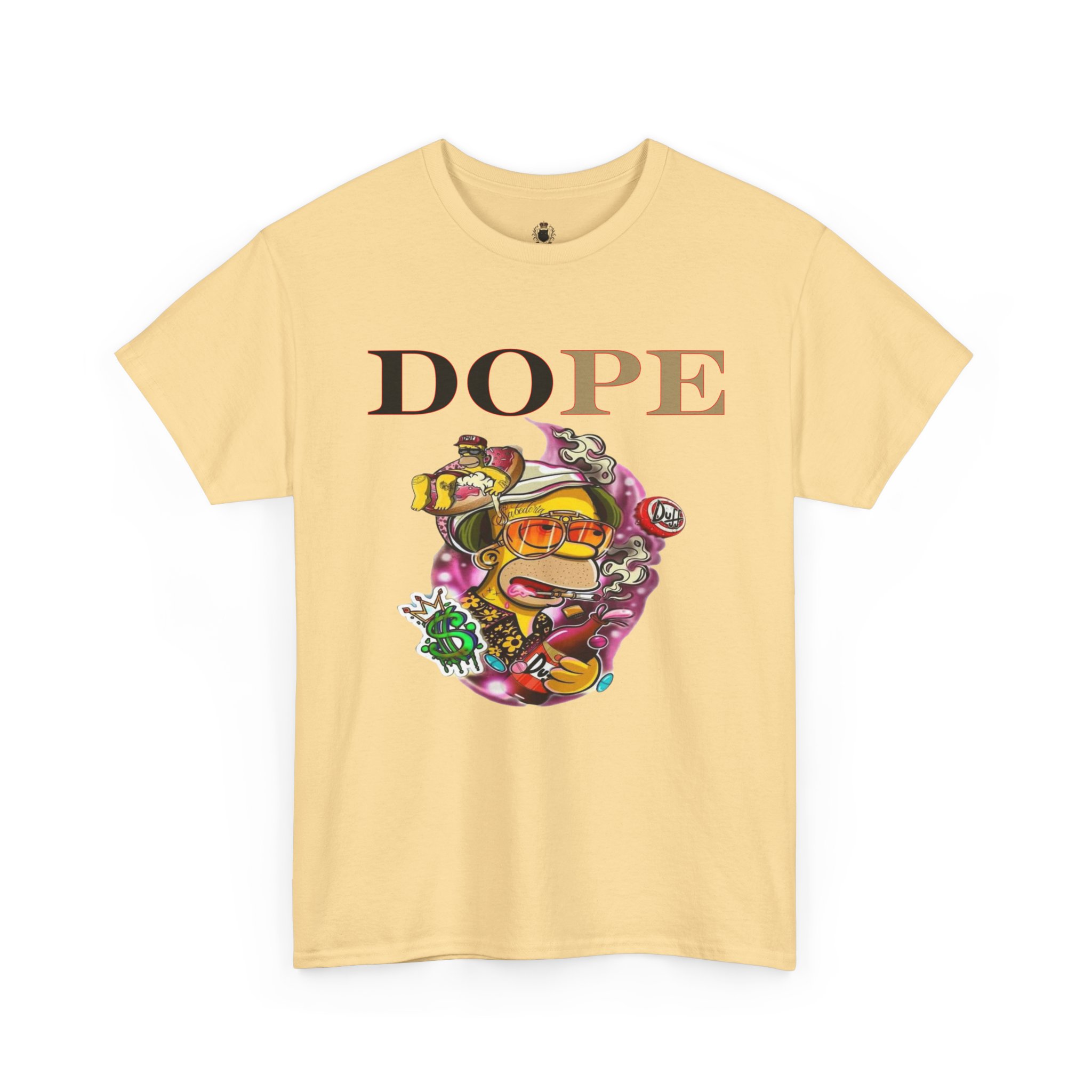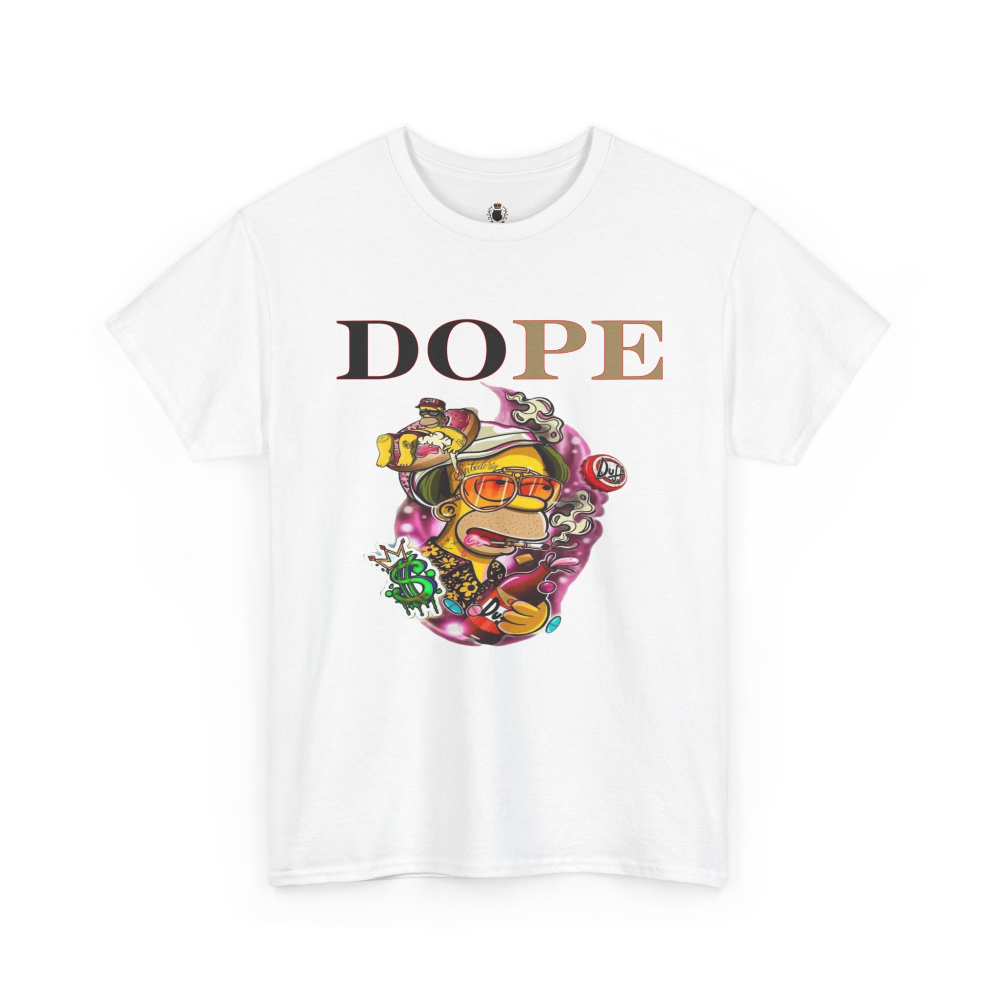A DoPE Homer Simpson inspired T-shirt that exudes a fun and playful vibe. Perfect for fans of the iconic cartoon character and those who appreciate unique and offbeat designs. Ideal for casual wear, lounging, or as a statement piece for a themed party.