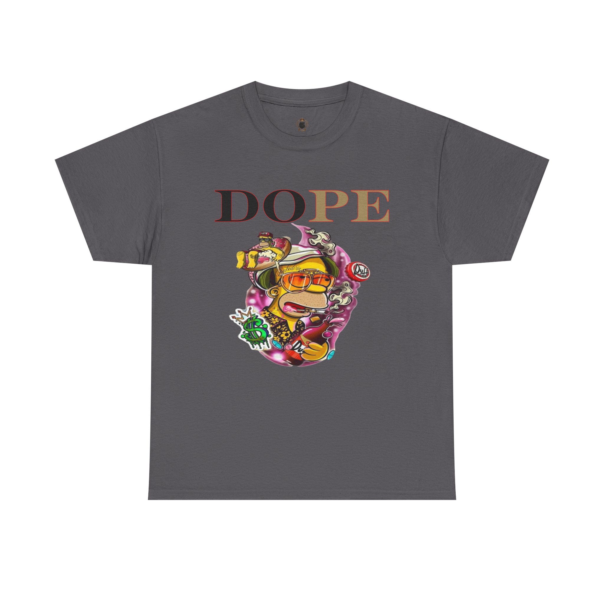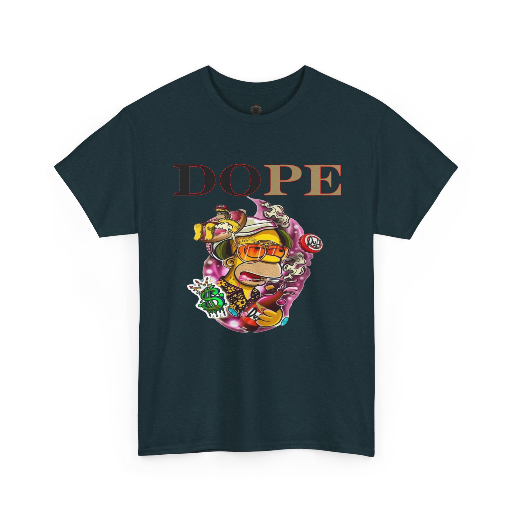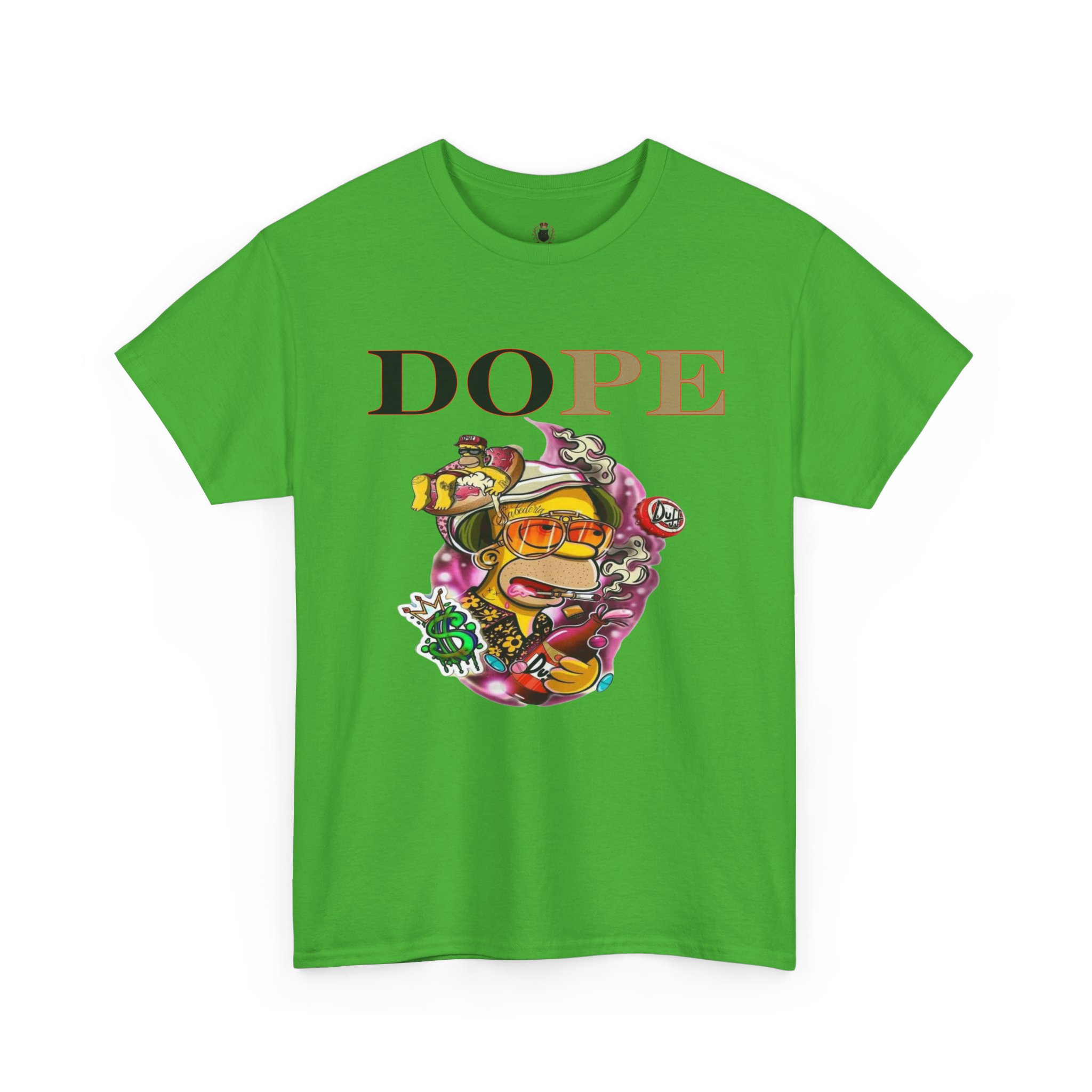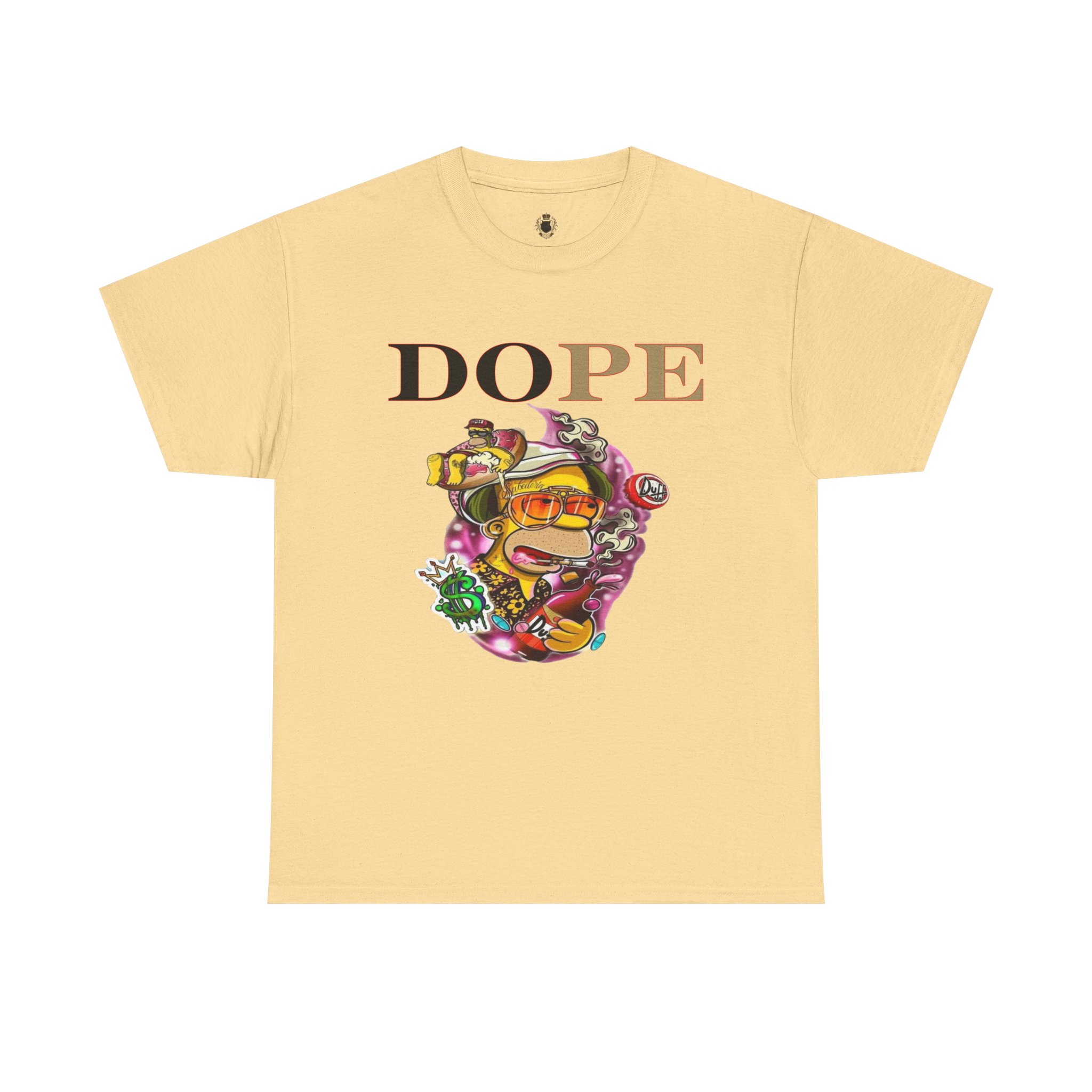 A DoPE Homer Simpson inspired T-shirt that exudes a fun and playful vibe. Perfect for fans of the iconic cartoon character and those who appreciate unique and offbeat designs. Ideal for casual wear, lounging, or as a statement piece for a themed party.