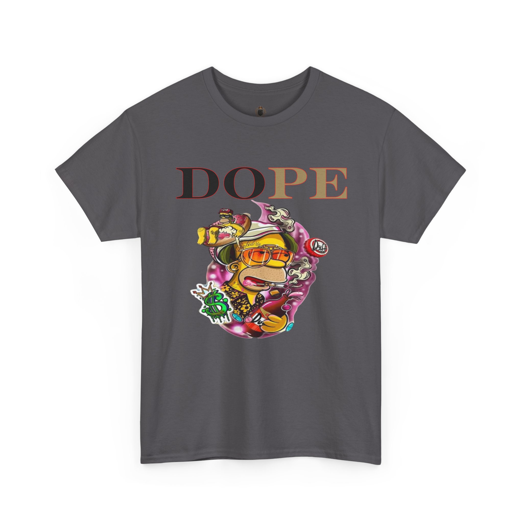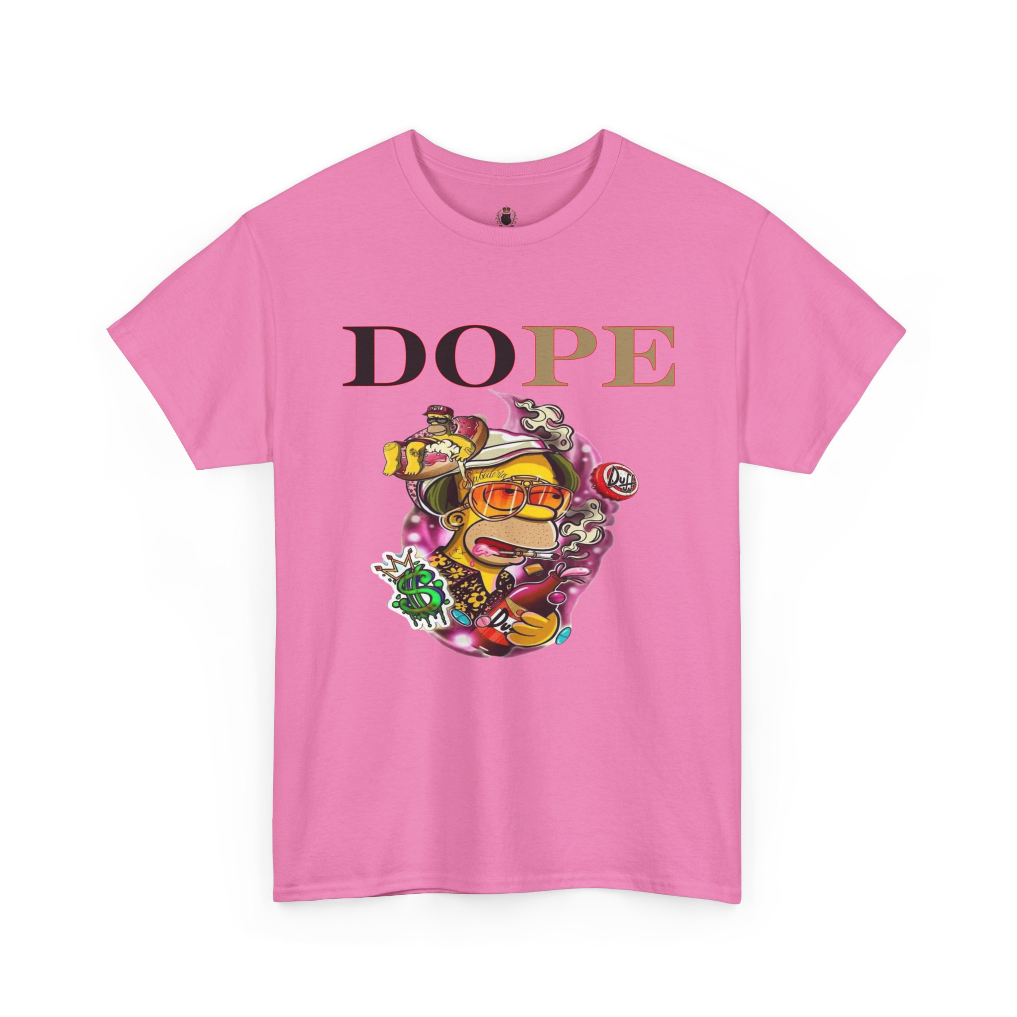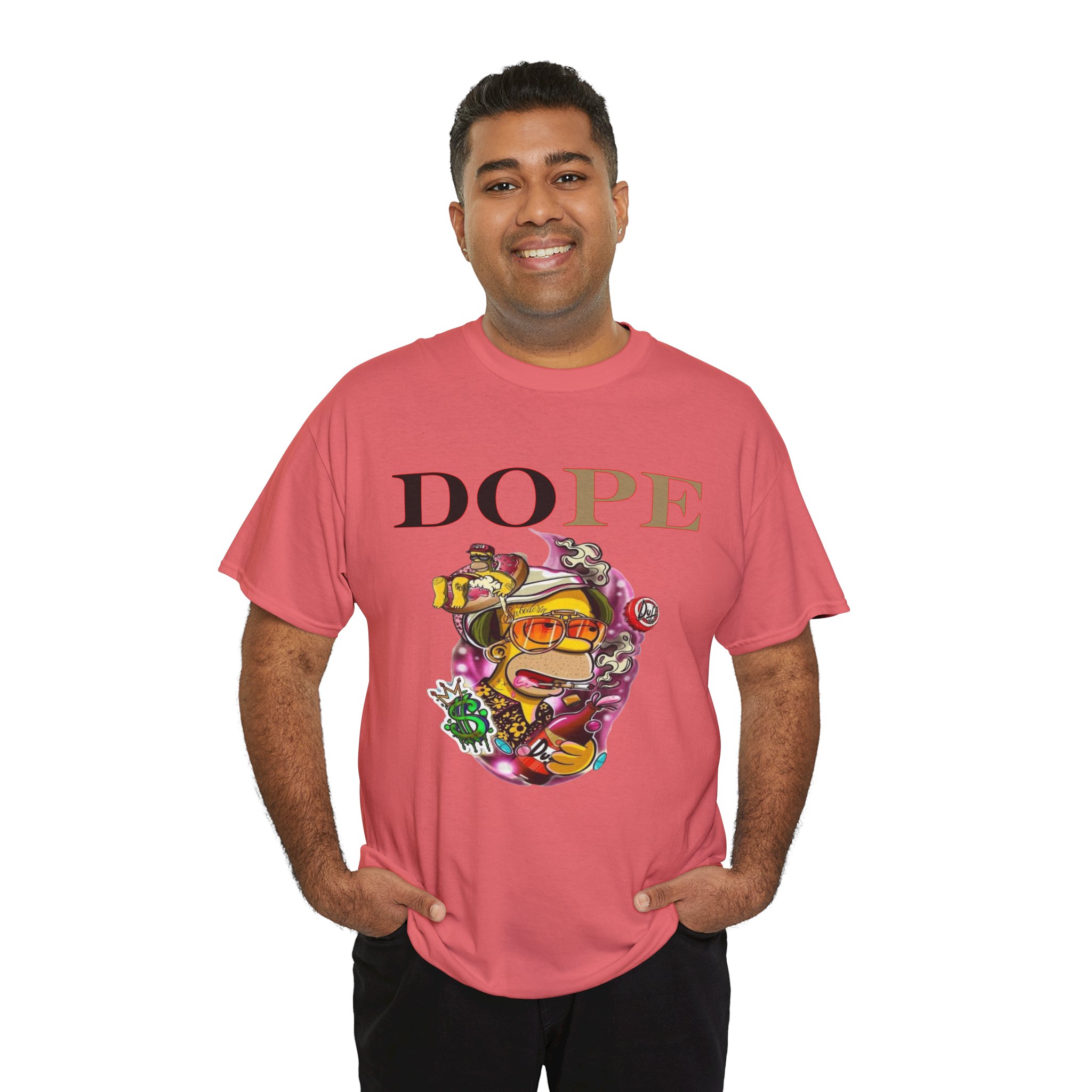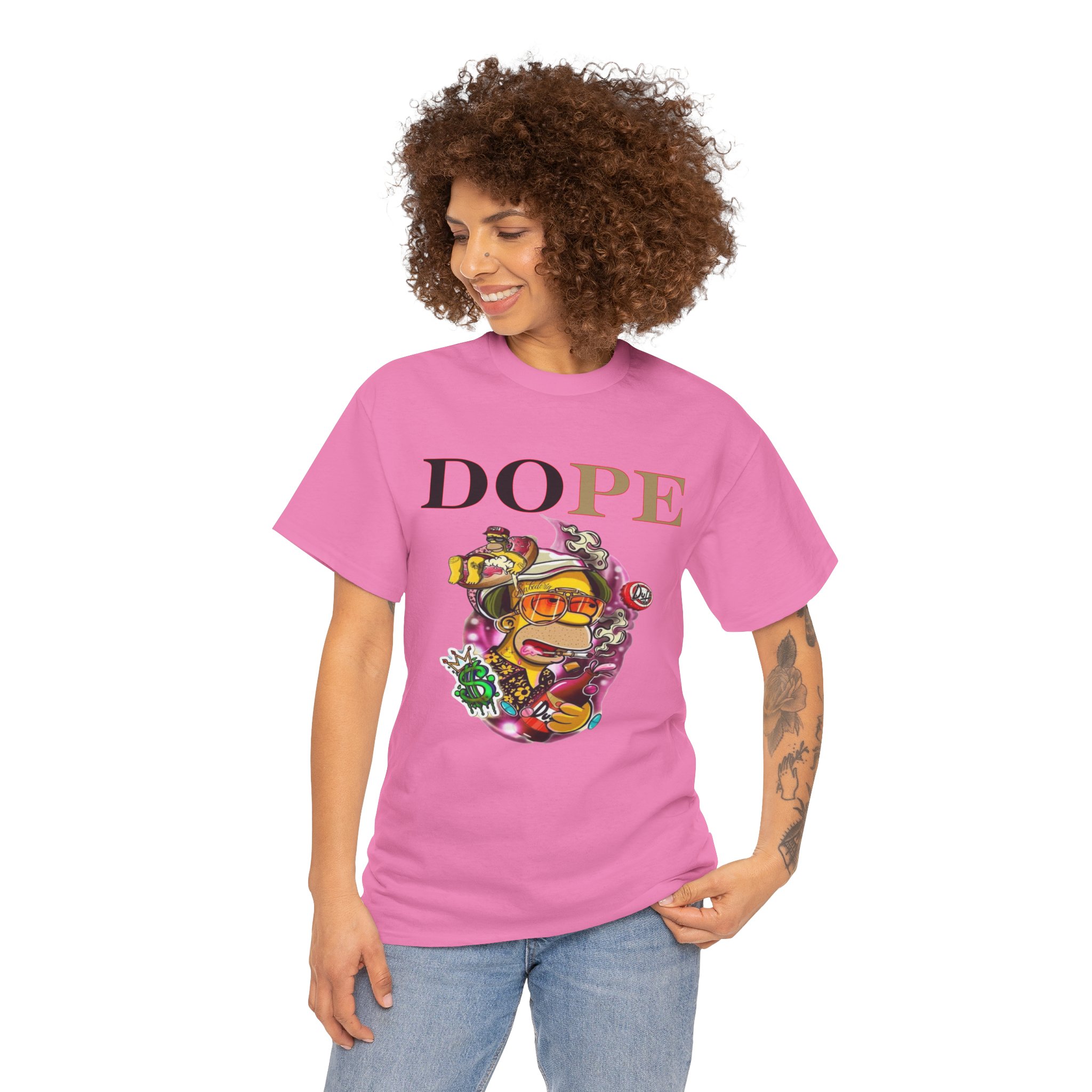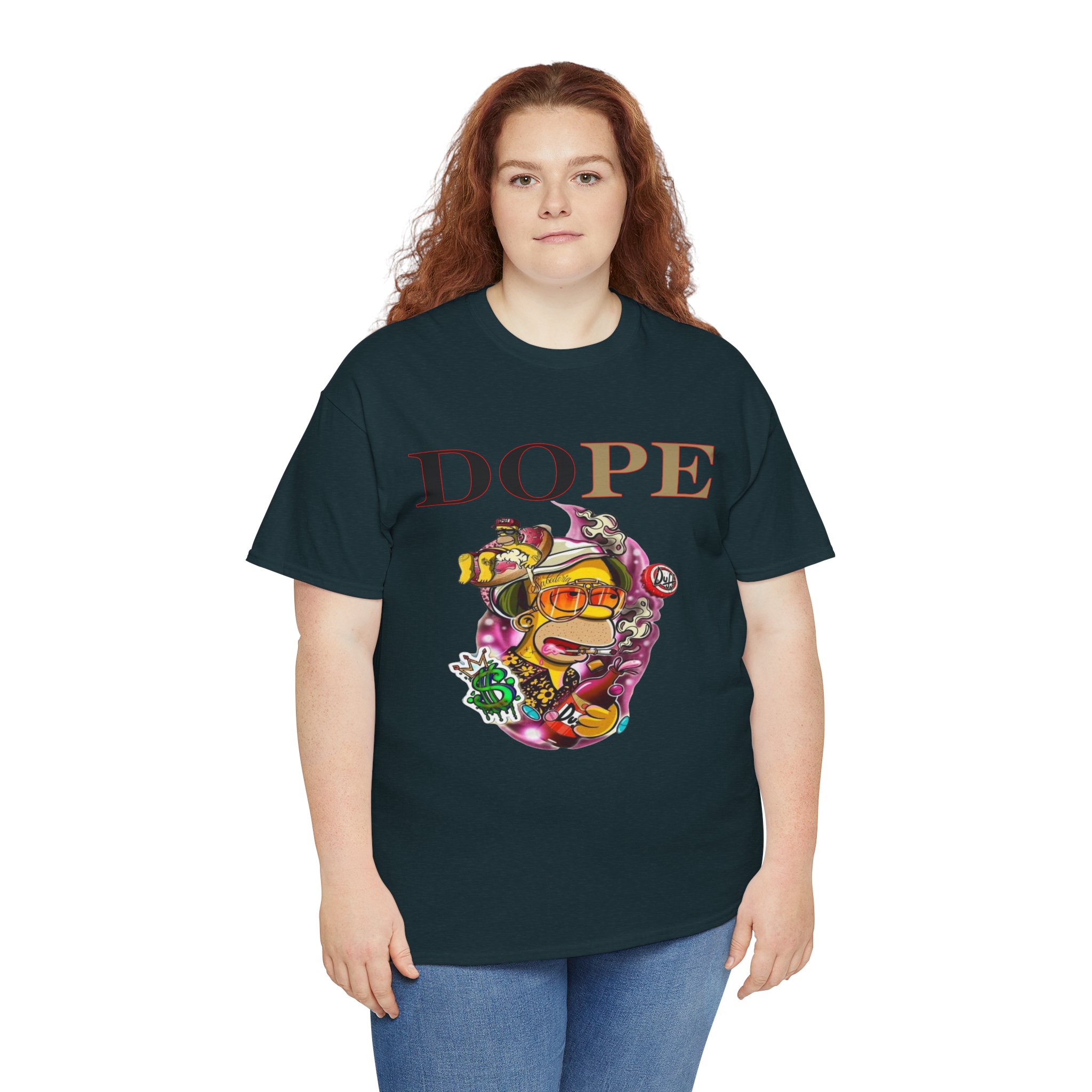 A DoPE Homer Simpson inspired T-shirt that exudes a fun and playful vibe. Perfect for fans of the iconic cartoon character and those who appreciate unique and offbeat designs. Ideal for casual wear, lounging, or as a statement piece for a themed party.