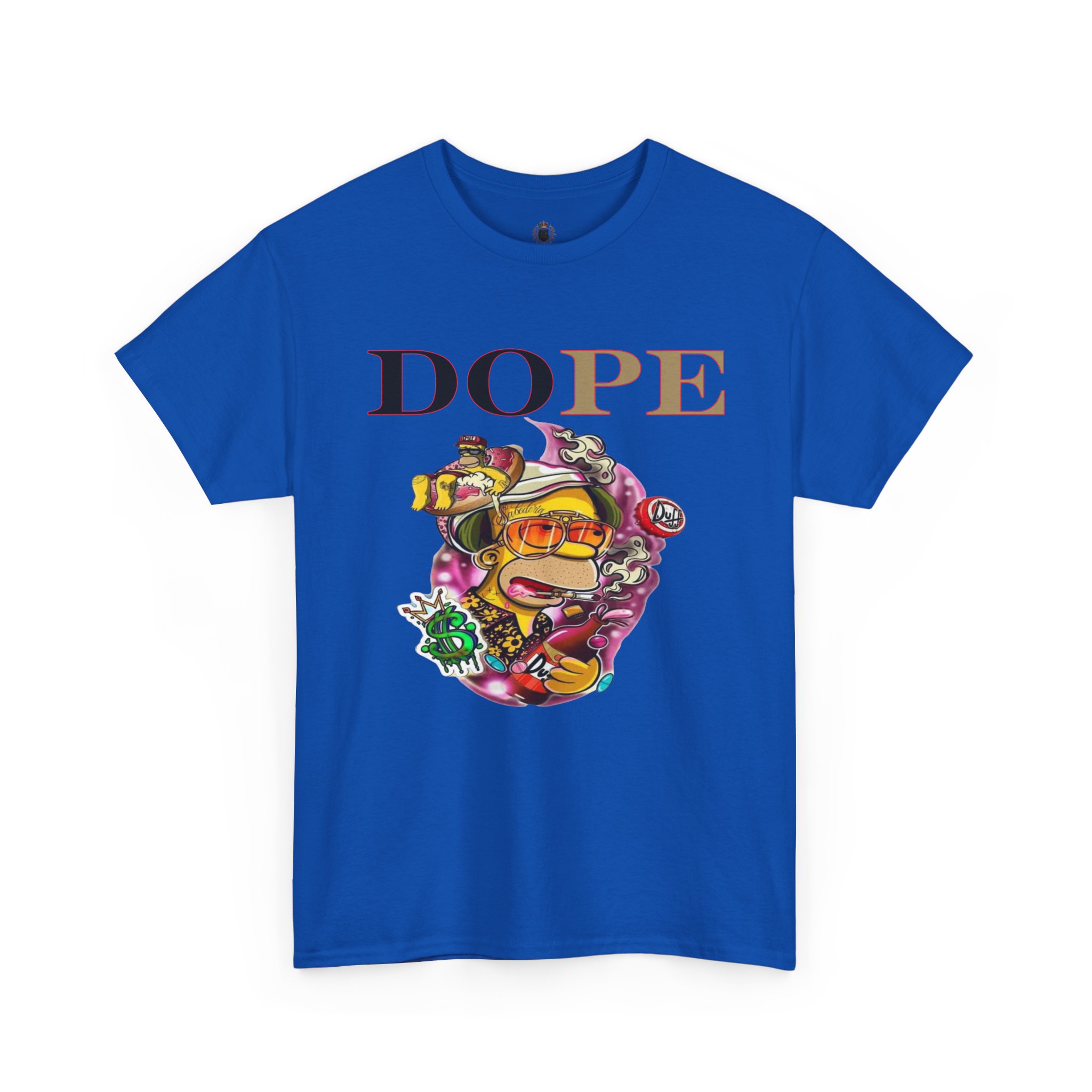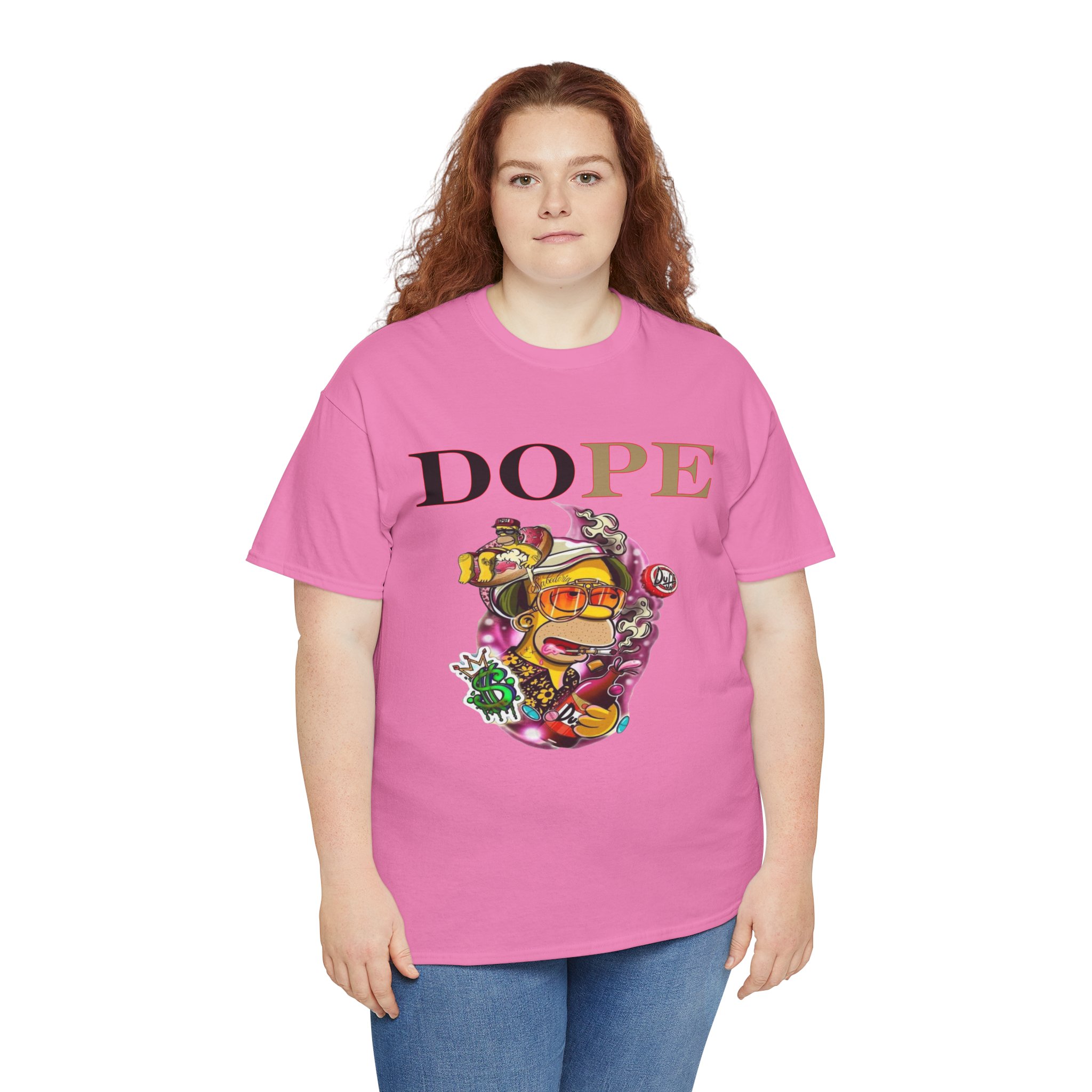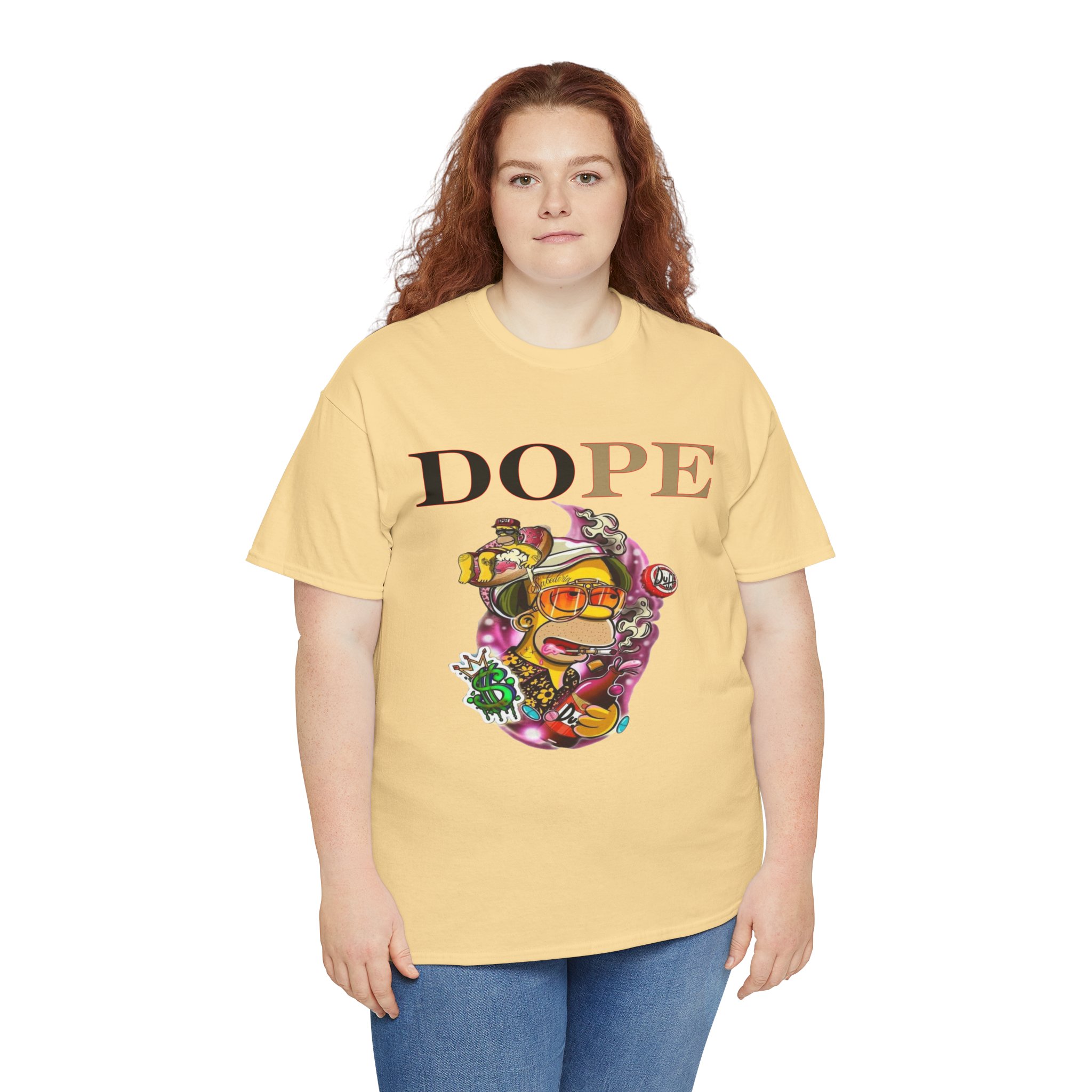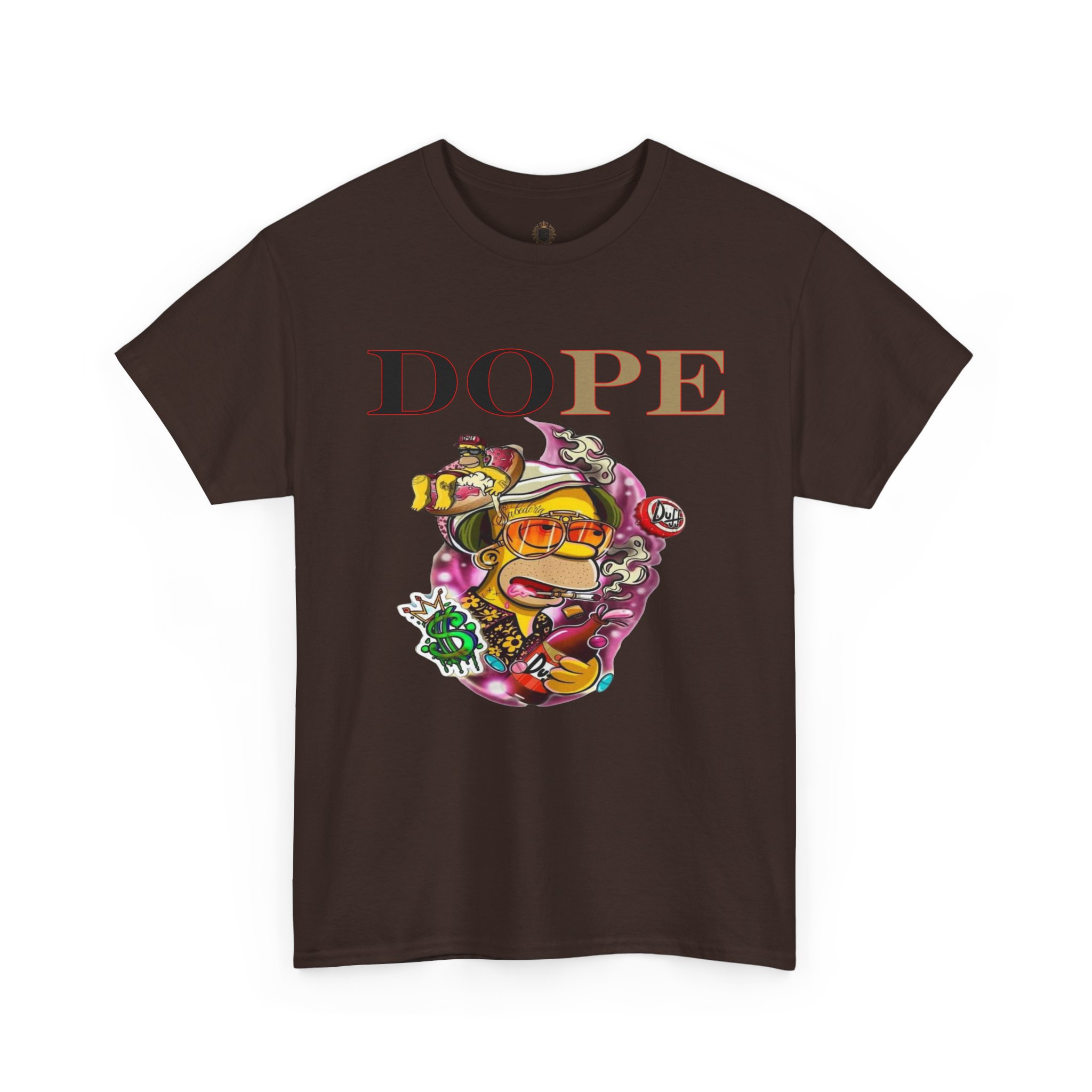 A DoPE Homer Simpson inspired T-shirt that exudes a fun and playful vibe. Perfect for fans of the iconic cartoon character and those who appreciate unique and offbeat designs. Ideal for casual wear, lounging, or as a statement piece for a themed party.
