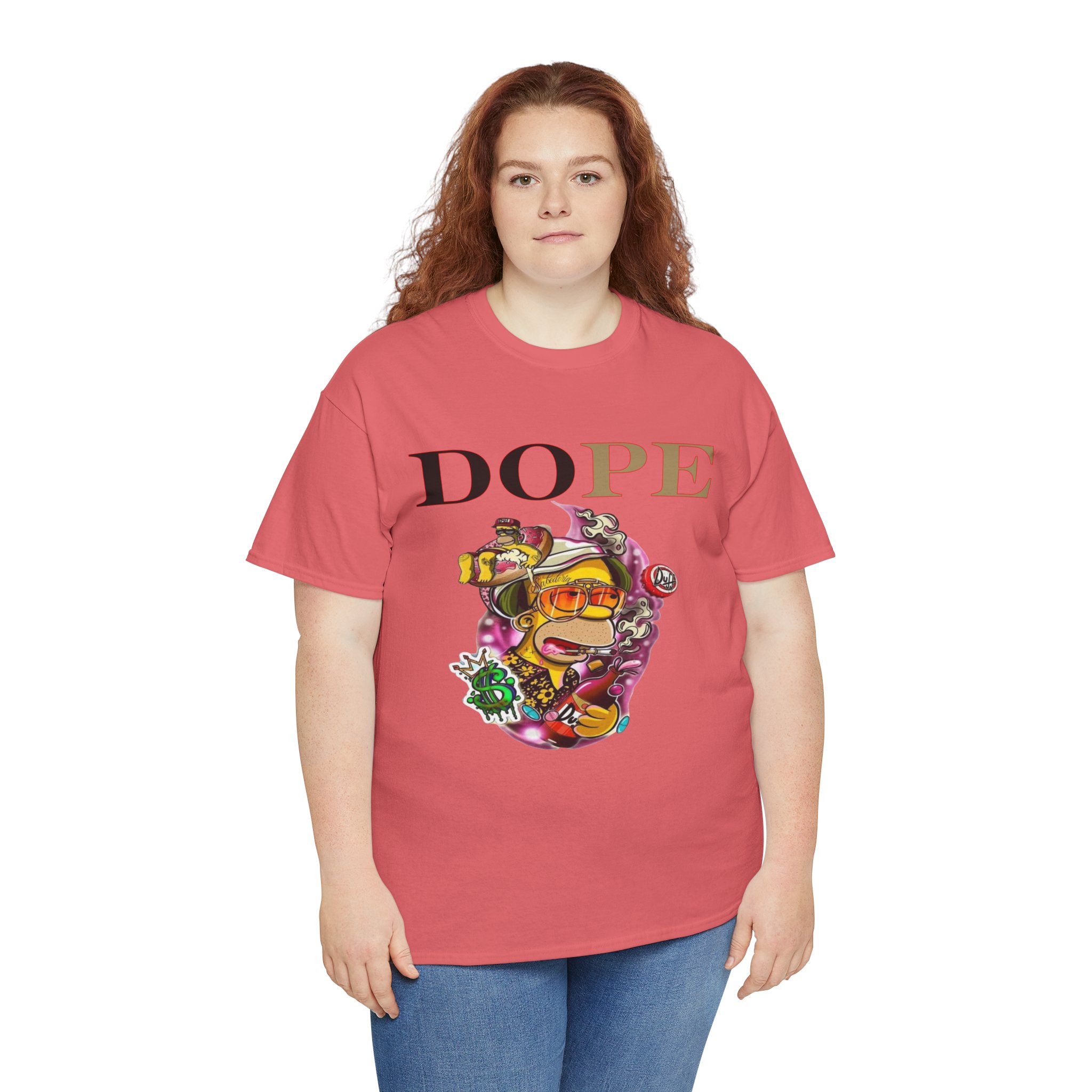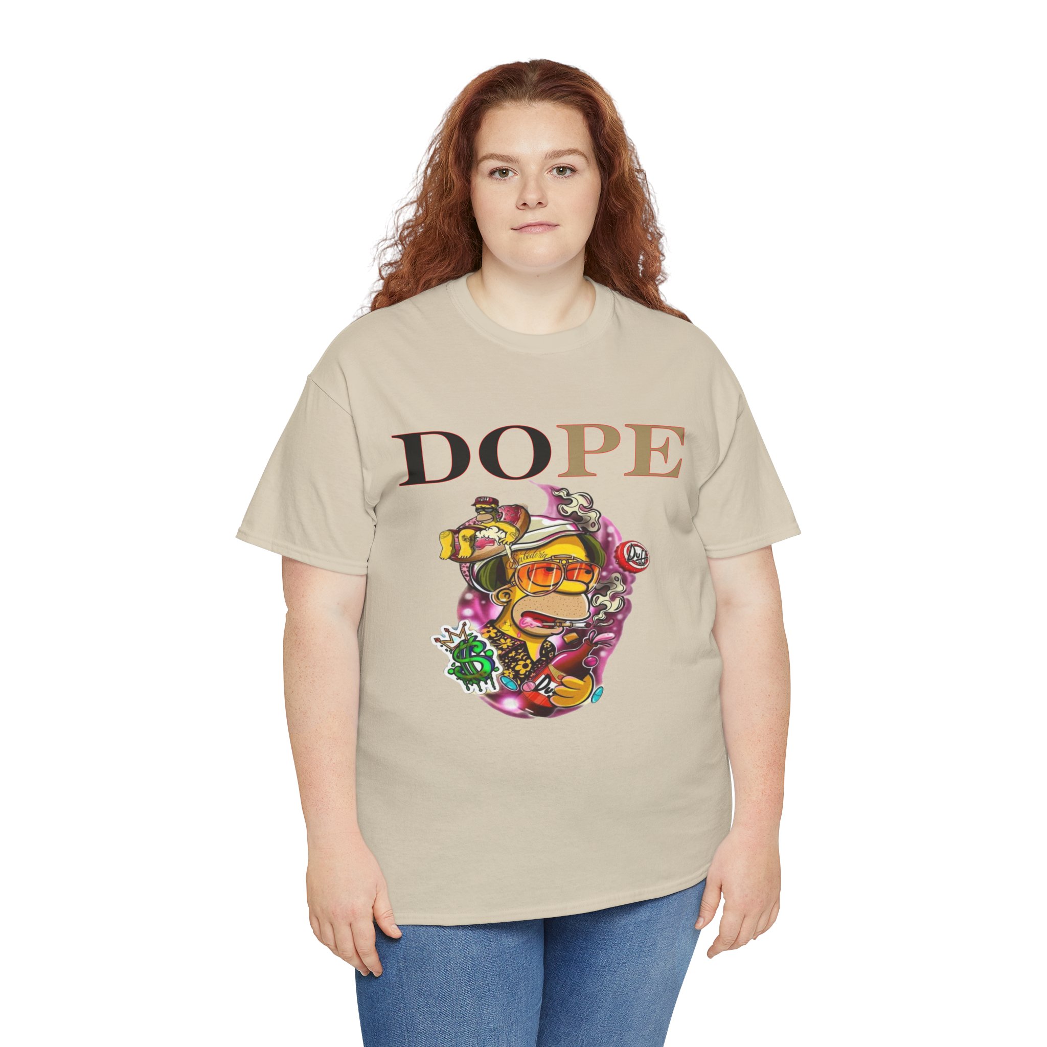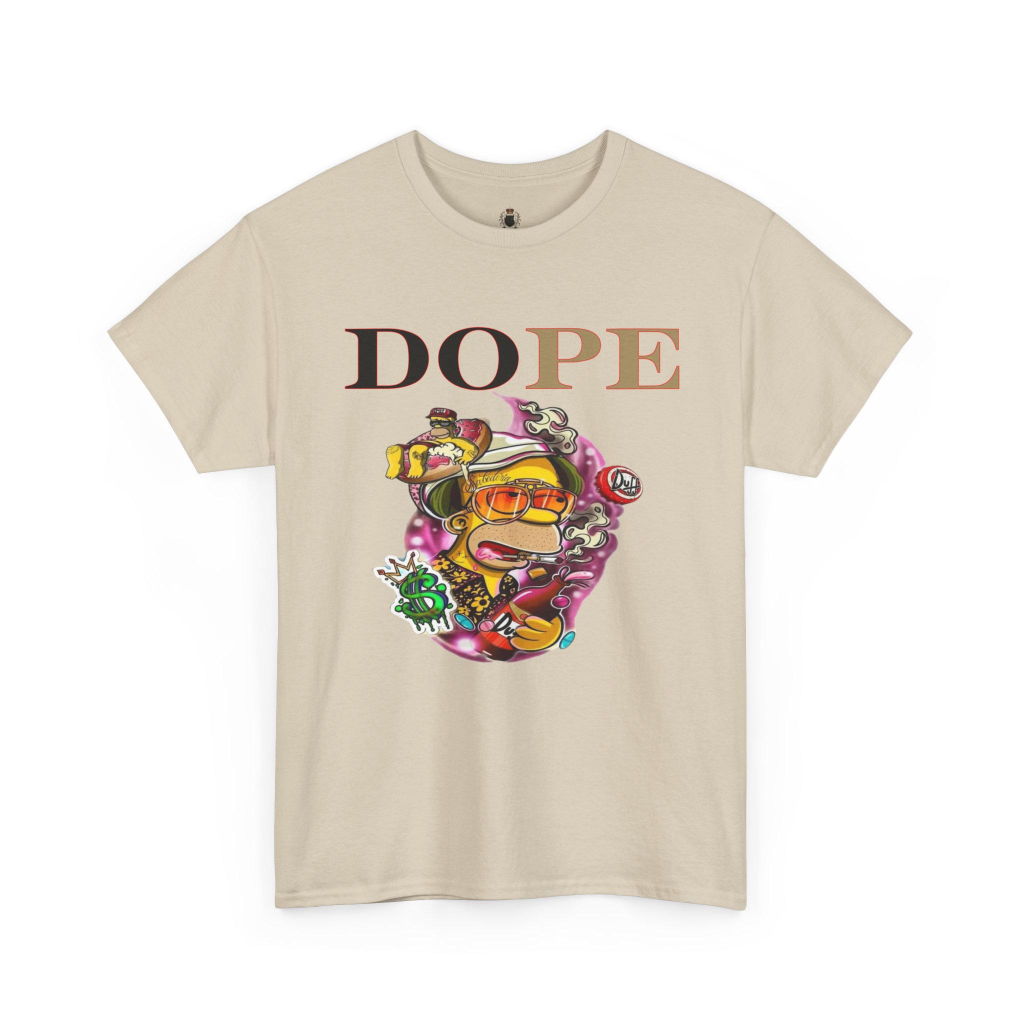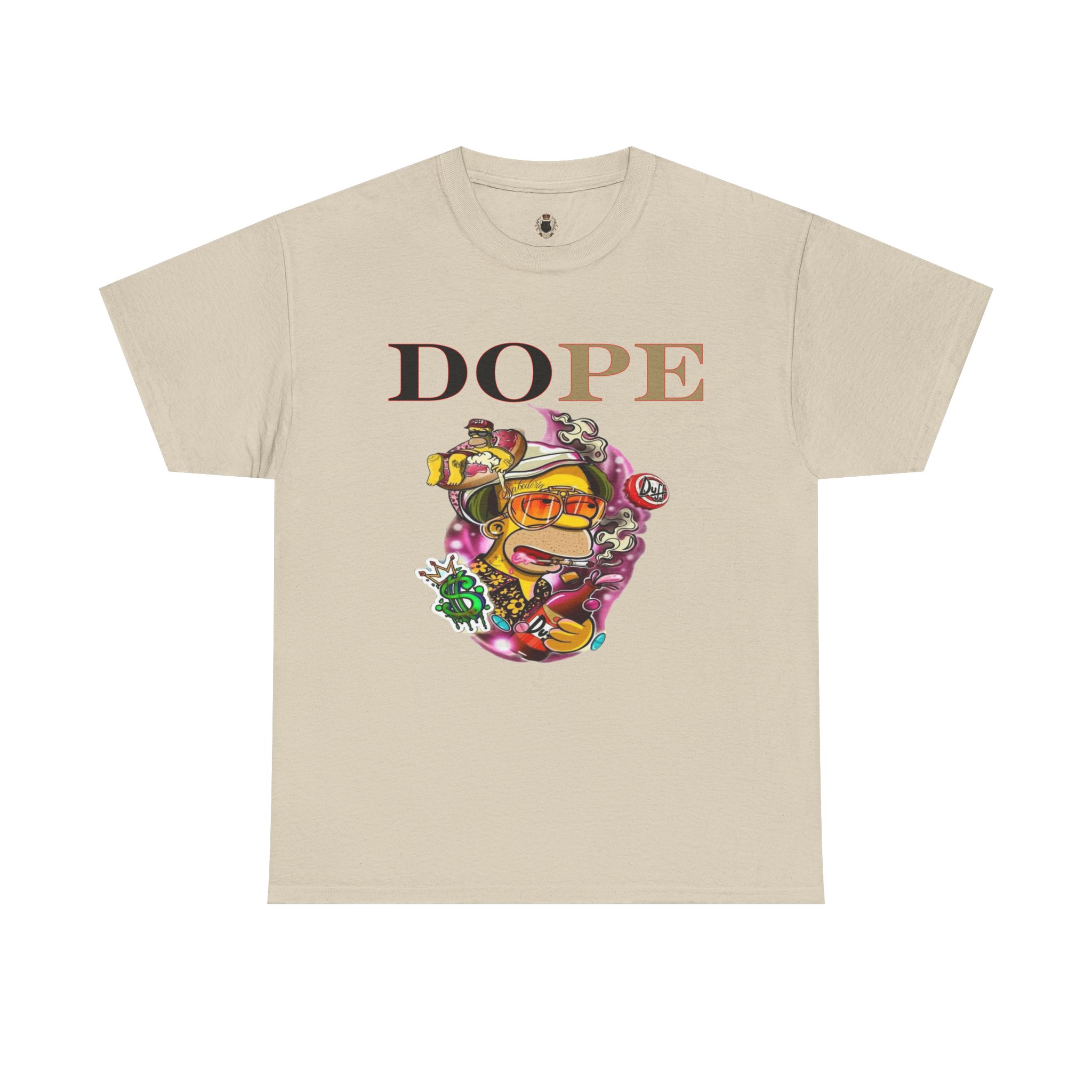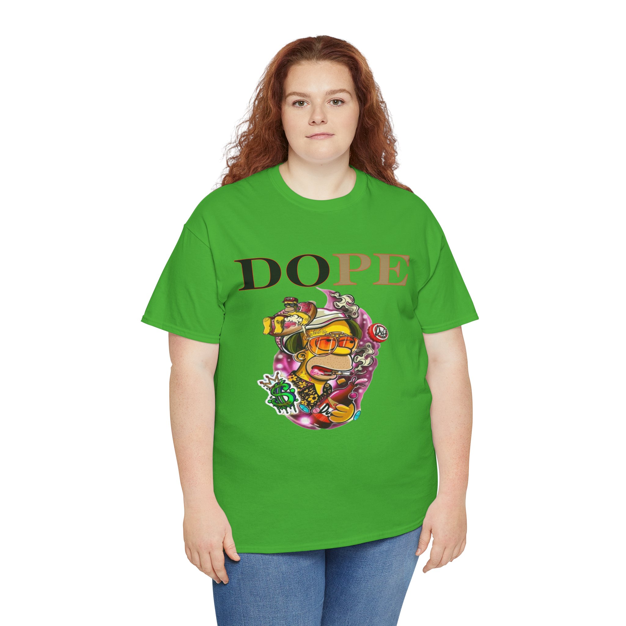 A DoPE Homer Simpson inspired T-shirt that exudes a fun and playful vibe. Perfect for fans of the iconic cartoon character and those who appreciate unique and offbeat designs. Ideal for casual wear, lounging, or as a statement piece for a themed party.
