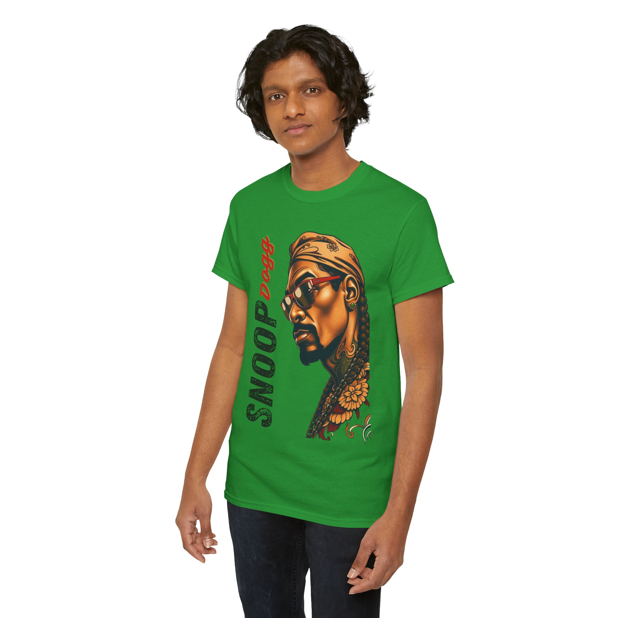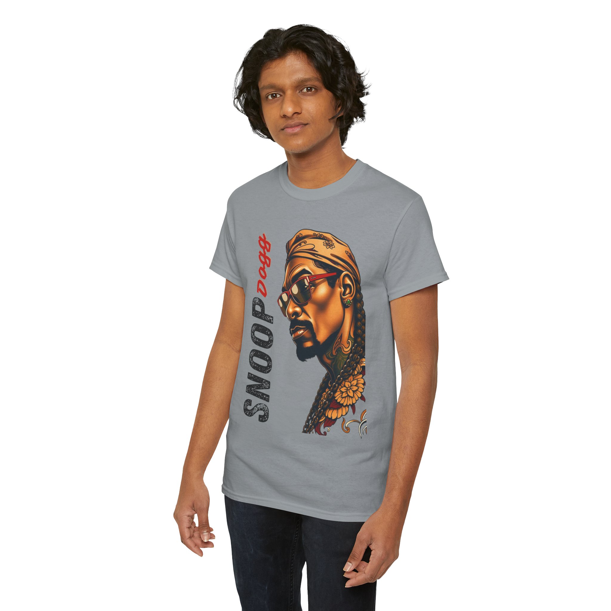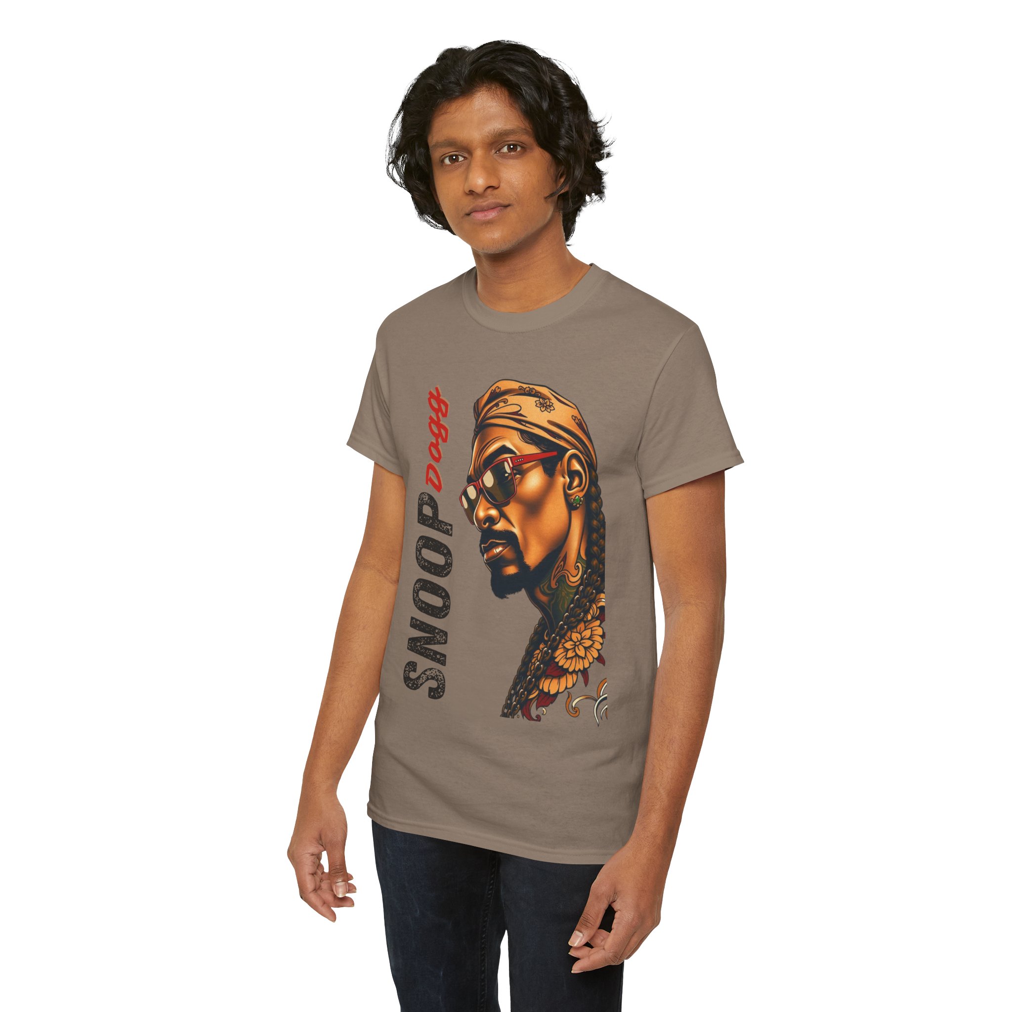 A Snopp Dogg inspired t-shirt perfect for fans of the artist looking to show off their love for his music. This unisex heavy cotton tee is made for adults and offers year-round comfort with lasting durability. The classic fit ensures a comfy, relaxed wear while the crew neckline adds a neat, timeless look that can blend into any occasion, casual or semi-formal. Made with 100% cotton, this tee is perfect for printing and features a tear-away label for a scratch-free experience.